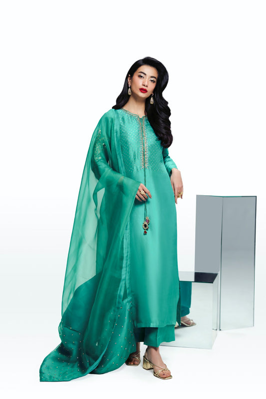 This exclusive product from Ali Xeeshan is available solely through custom orders. For any inquiries, please contact us, and our dedicated team will get back to you promptly to discuss your requirements and options.