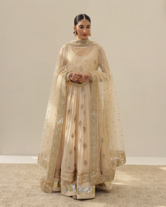 Material: Bamber Silk. 1-Pc (Anarkali with attached extended Lehenga)