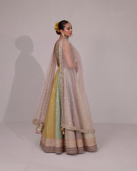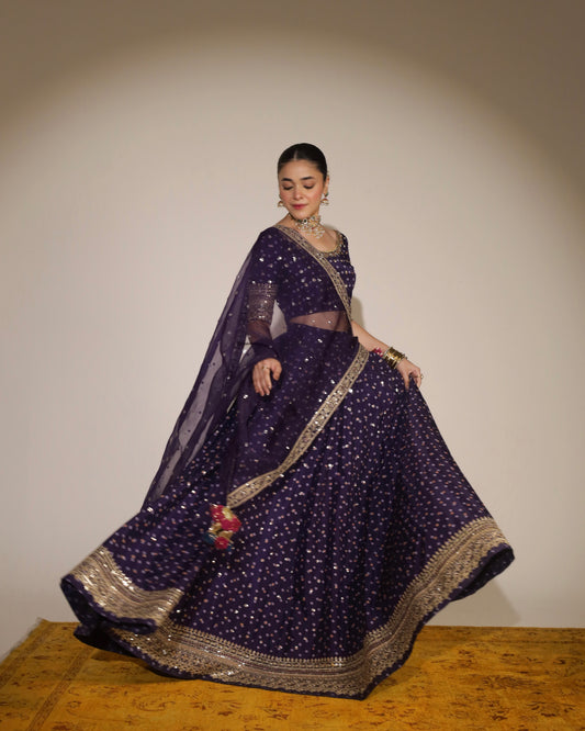 Material: 2-Pc (Organza Choli & Fused Bamber Silk Lehenga)