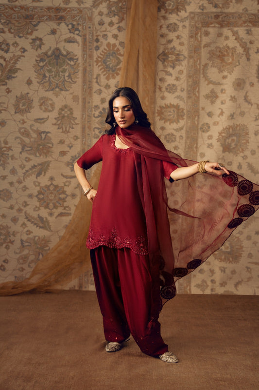 shirt dupatta and crushed sharara
