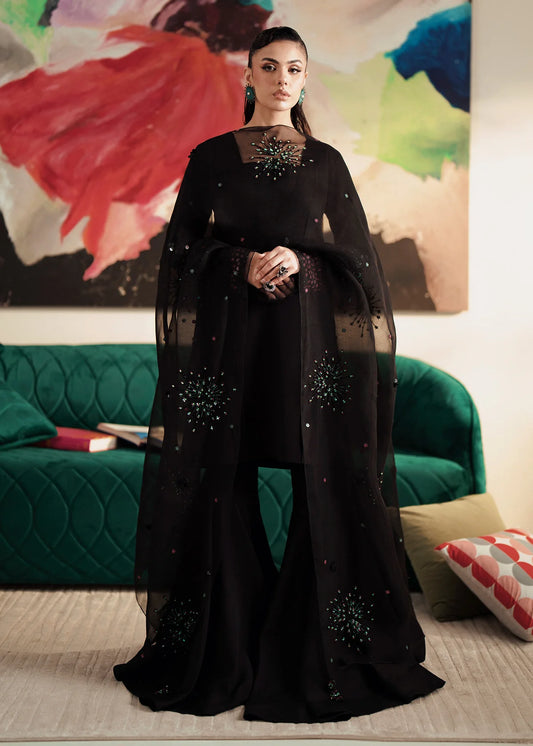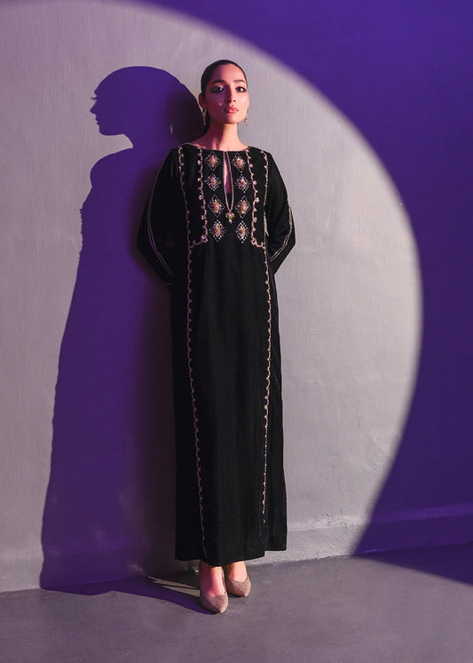 This long black shirt is beautifully decked with intricate handwork of sequin, kat dana, crystal,...