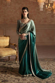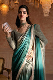 Harnessing high glam, Ailey exudes effortless sophistication. Crafted on an opulent ombré green canvas, the silk saree is adorned with a myriad of cut dana, stones and sequins highlighting its statement silhouette. This set includes a delicately adorned velvet blouse that further elevates the timeless appeal of the outfit, ensuring you stand out wherever you go.