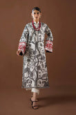 This stunning white Kantha work shirt features intricate black Kantha stitching spread across the fabric, creating a bold and dramatic contrast. The highlight of the design is the vibrant red Kantha work border on the sleeves, adding a pop of color and a sophisticated finish to the overall look. The combination of black and red embroidery against the crisp white background makes this shirt an eye-catching piece, perfect for making a stylish statement. Completing the look with white viscose silk culottes.