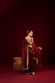 The long velvet shirt features a striking neckline adorned with intricate gota and mirror hand-embellishments, adding luminous detail against the deep hue. The design is elevated with our signature statement sleeves, blending traditional craftsmanship with modern elegance.