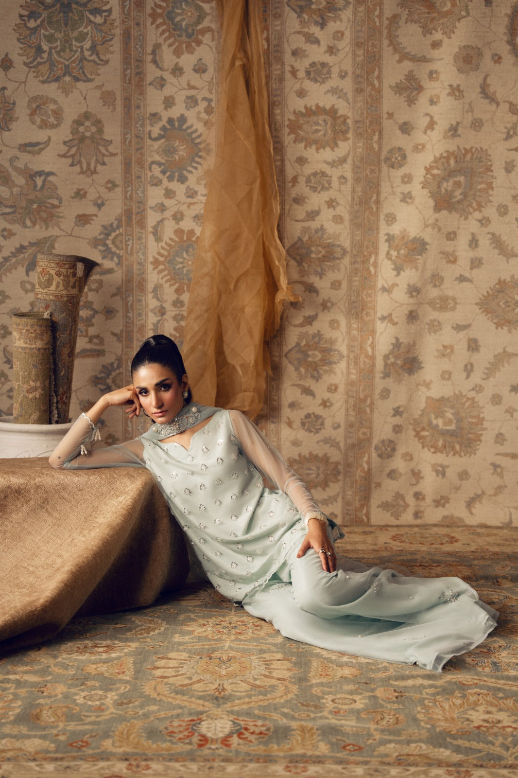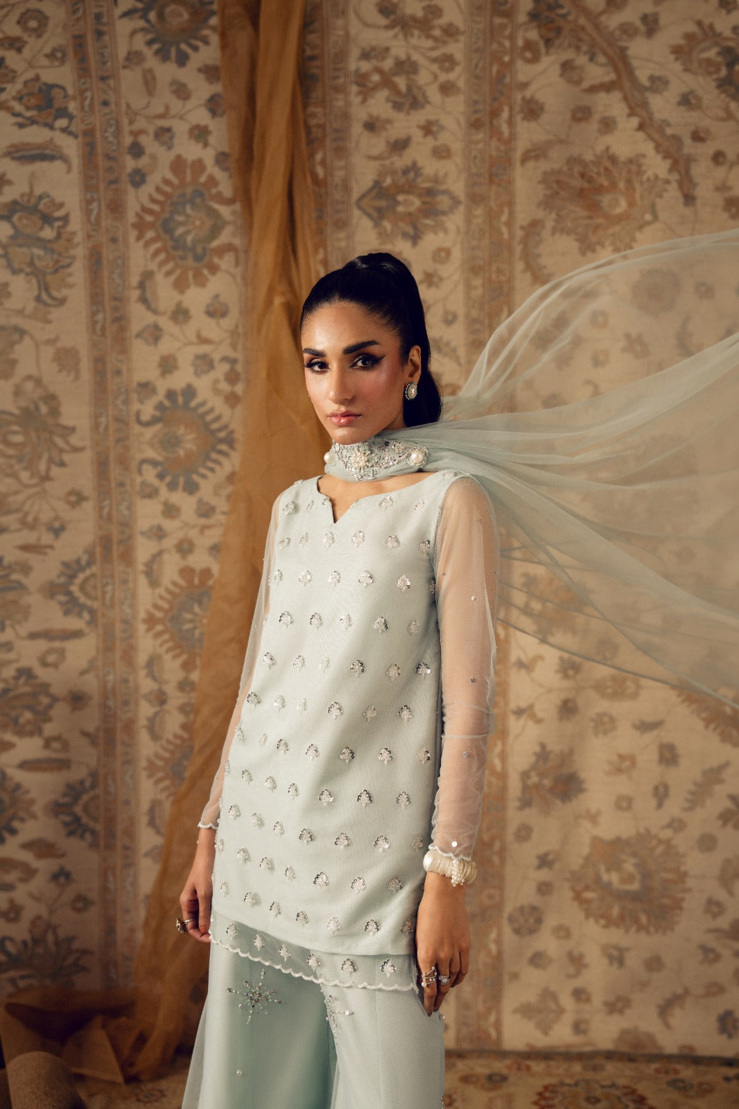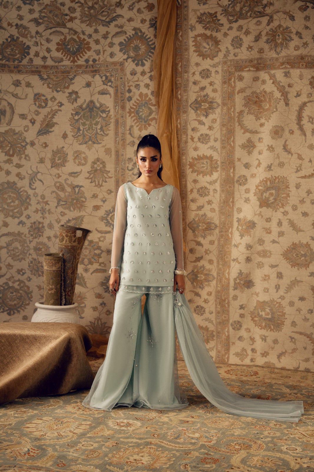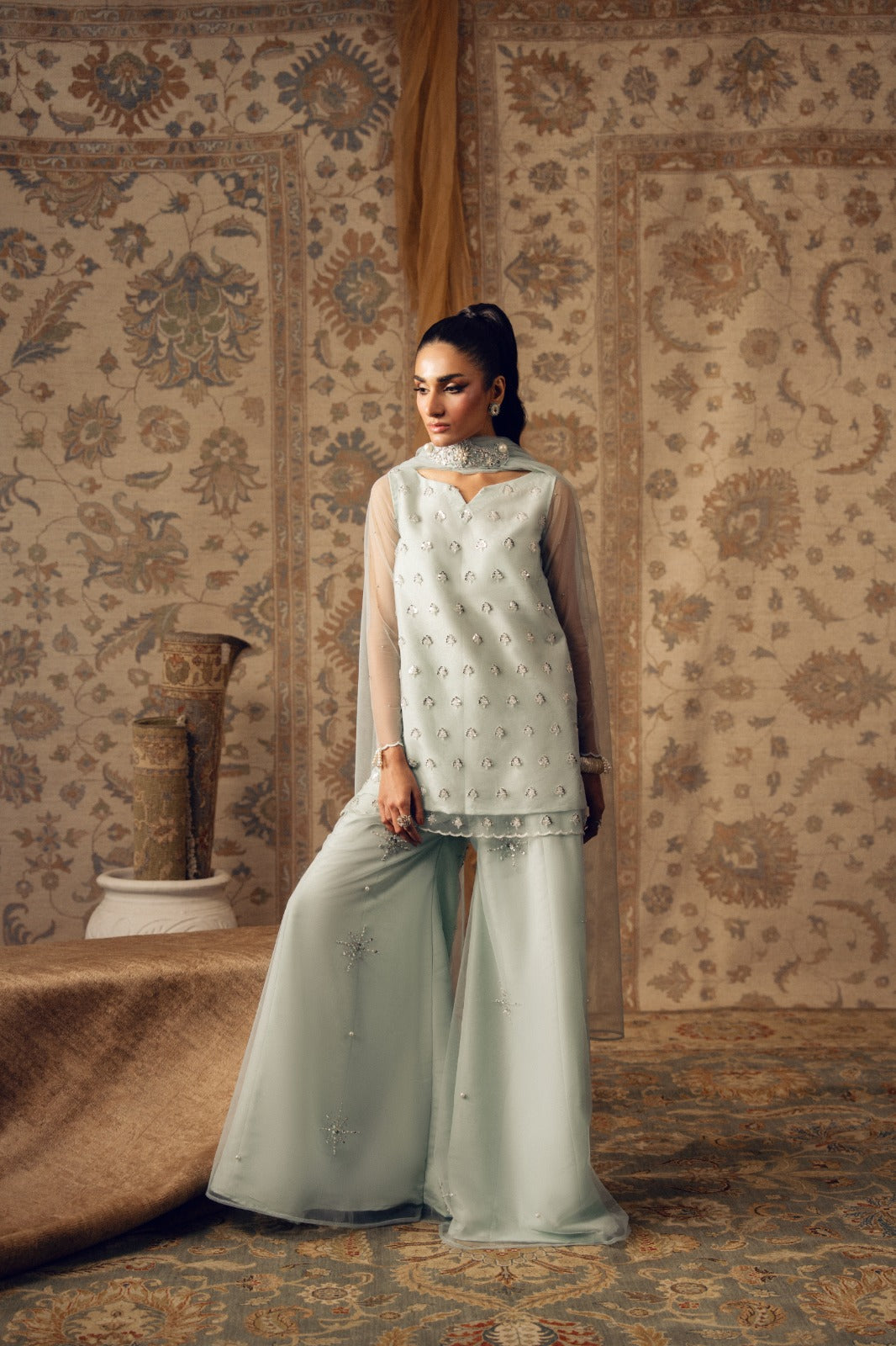 shirt dupatta and crushed sharara