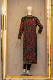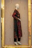 Inspired by traditions, an explosion of wild floral motifs showcased on a long draped shirt, mingled with hand miniature embroidery with Swarovskis and a boti motive on a chiffon canvas.