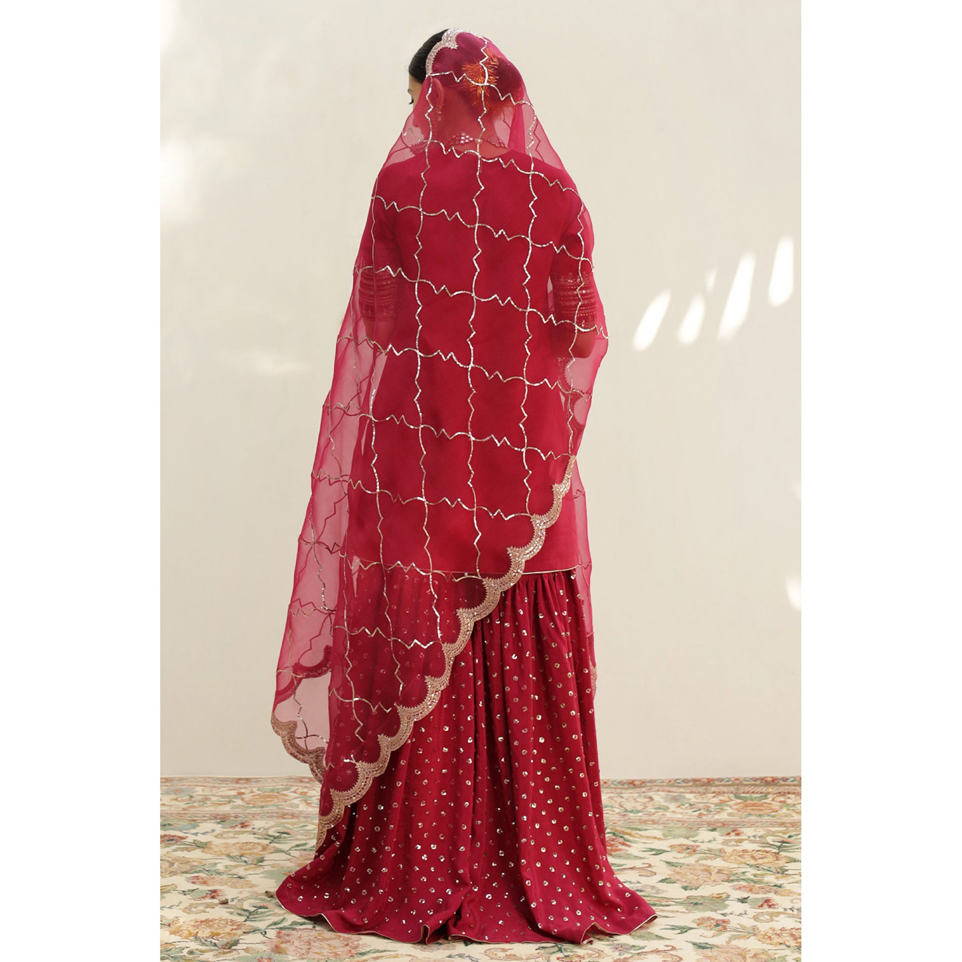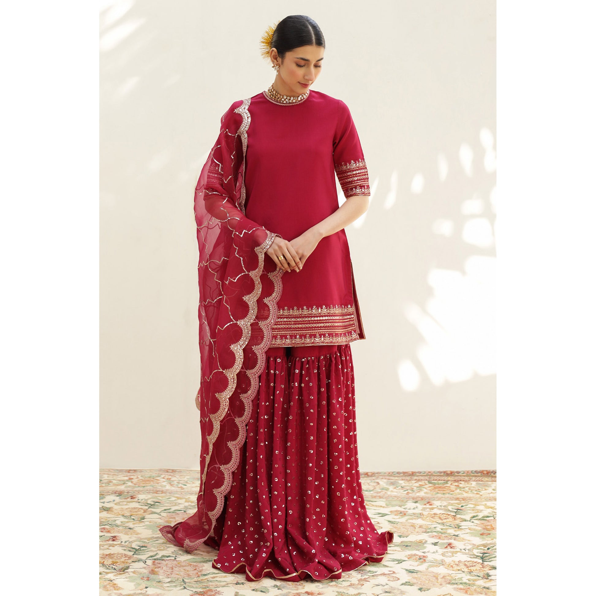 Material: Fused Bamber Silk. 2- Pc (Straight Kameez & Gharara)