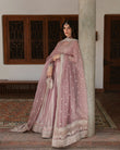 Evoking vintage glamour, Halina reimagines the classic pishwas in a vivid seashell pink hue. Crafted from luxurious tissue, the pishwas is adorned with intricate kora and dabka motifs. Complemented by a sheer embroidered organza dupatta and a sleek ox silk churidaar, this ensemble flows effortlessly — a true symphony of elegance and timeless style.