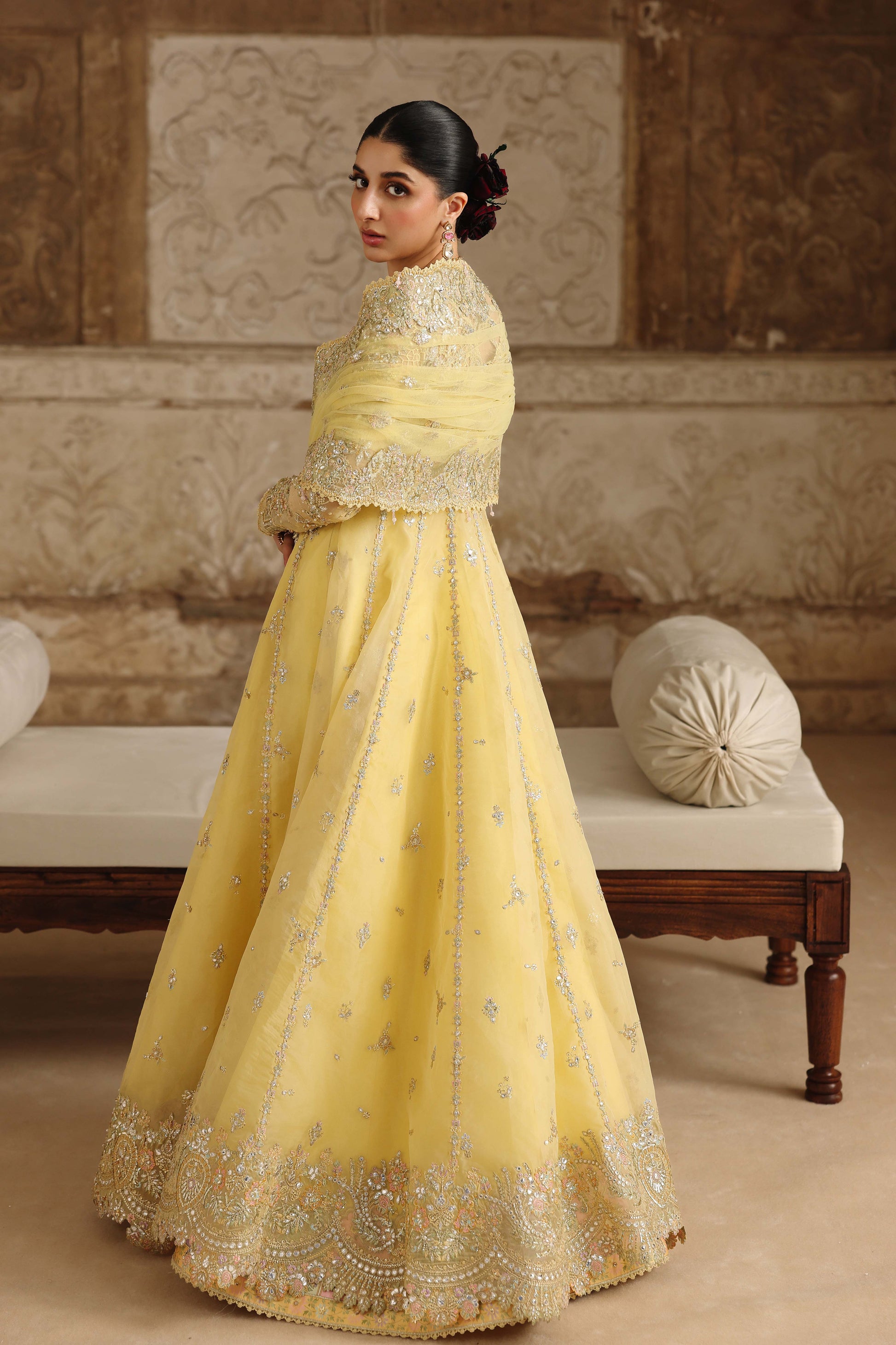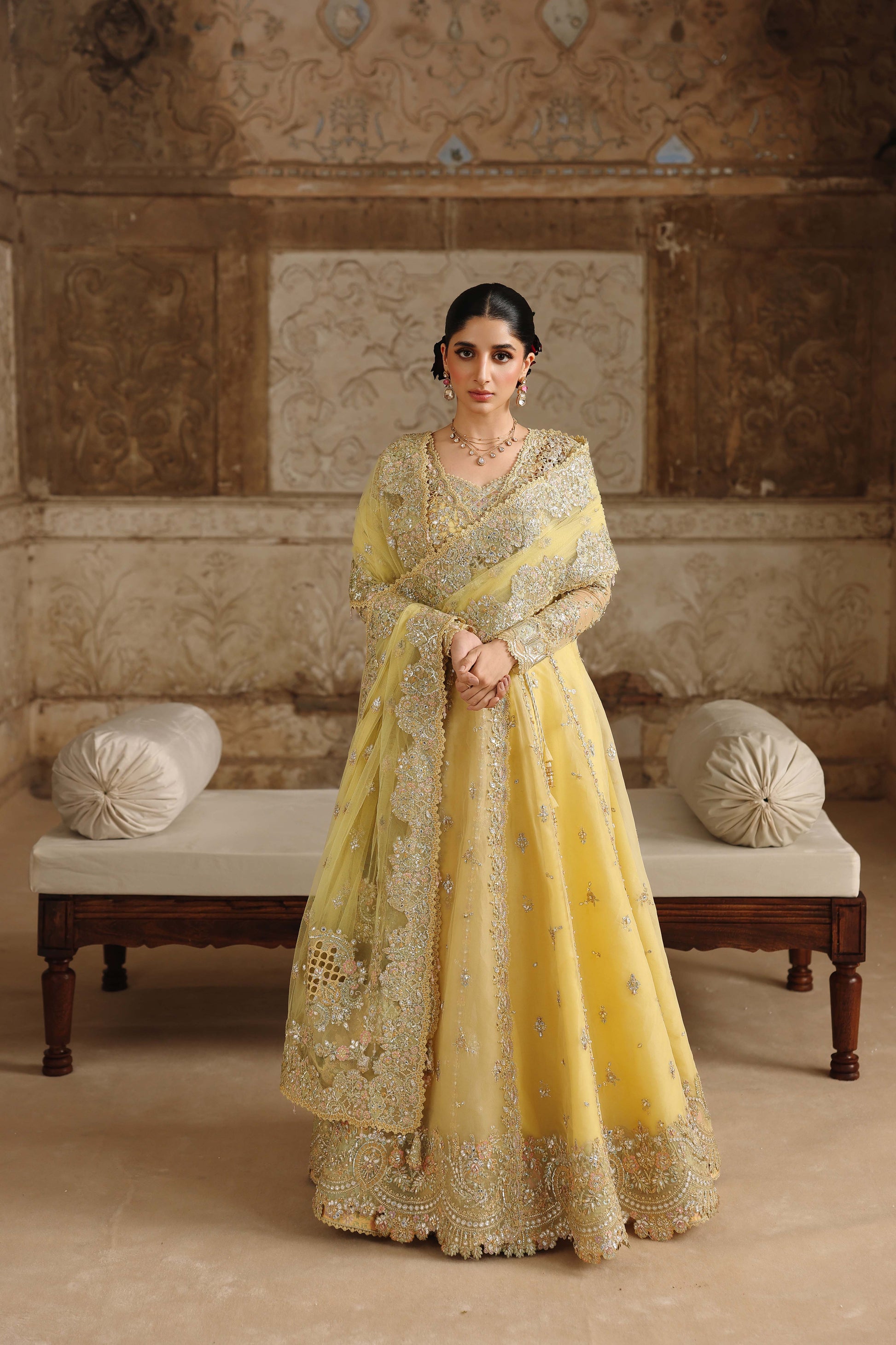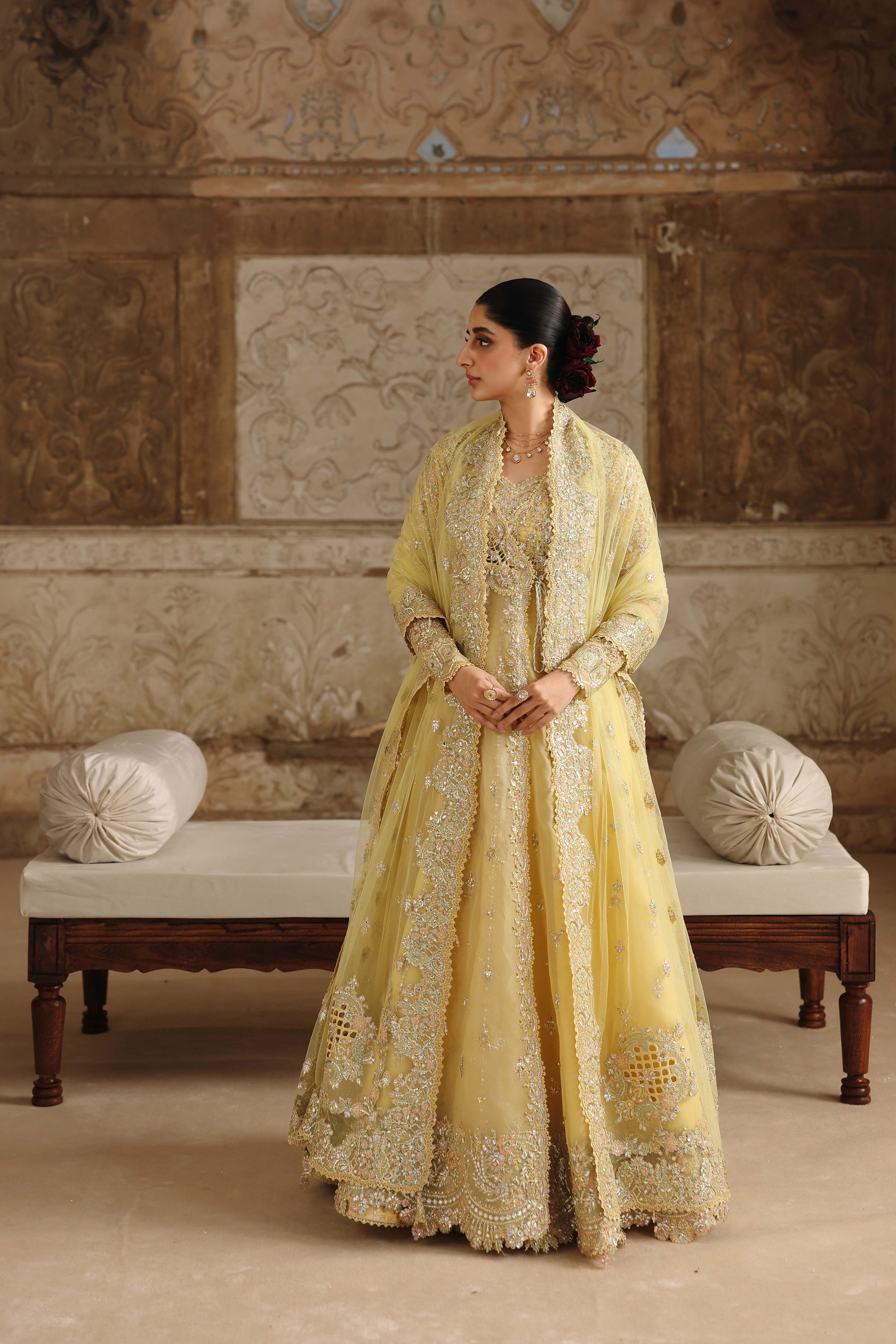 The back continues the luxury with fully embroidered bodice work, kallis, borders, laces, and decorative tassels—each element adding grace and movement. The hand-made embroidered sleeves and sleeve laces complete the silhouette with a refined traditional touch.