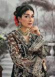 Command attention in this majestic onyx noir ensemble, a celebration of timeless elegance with a dramatic edge. The outfit features hand-embellished organza panels with scalloped detailing, elevated by intricate embroidery and refined borders that exude luxury. An intricately worked dupatta adds grace and sophistication, while the tailored trouser and inner ensure a sleek, refined finish. The design is further accentuated with a delicate silver sequin spray and masterful adda work, creating a luminous statement perfect for evening festivities.