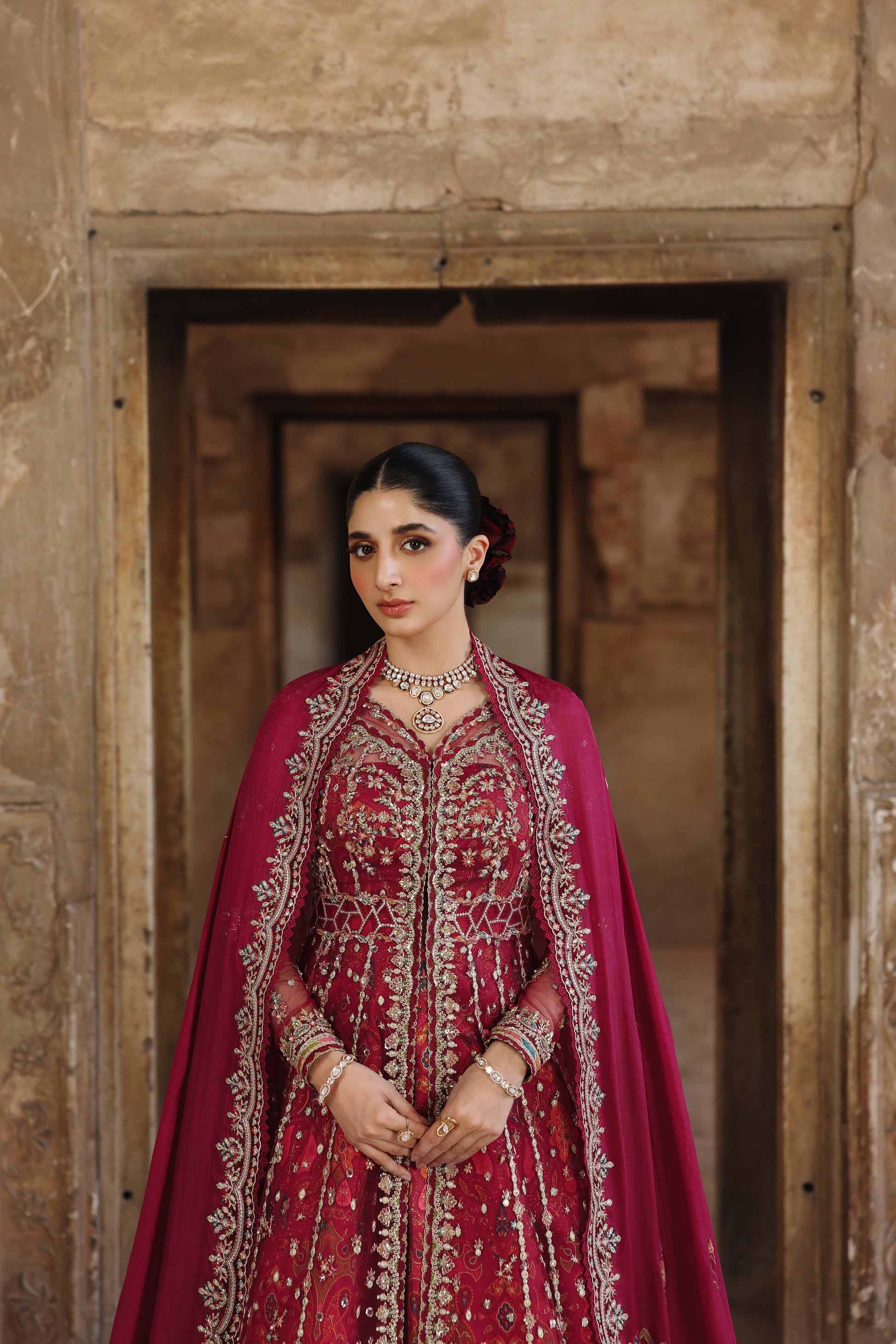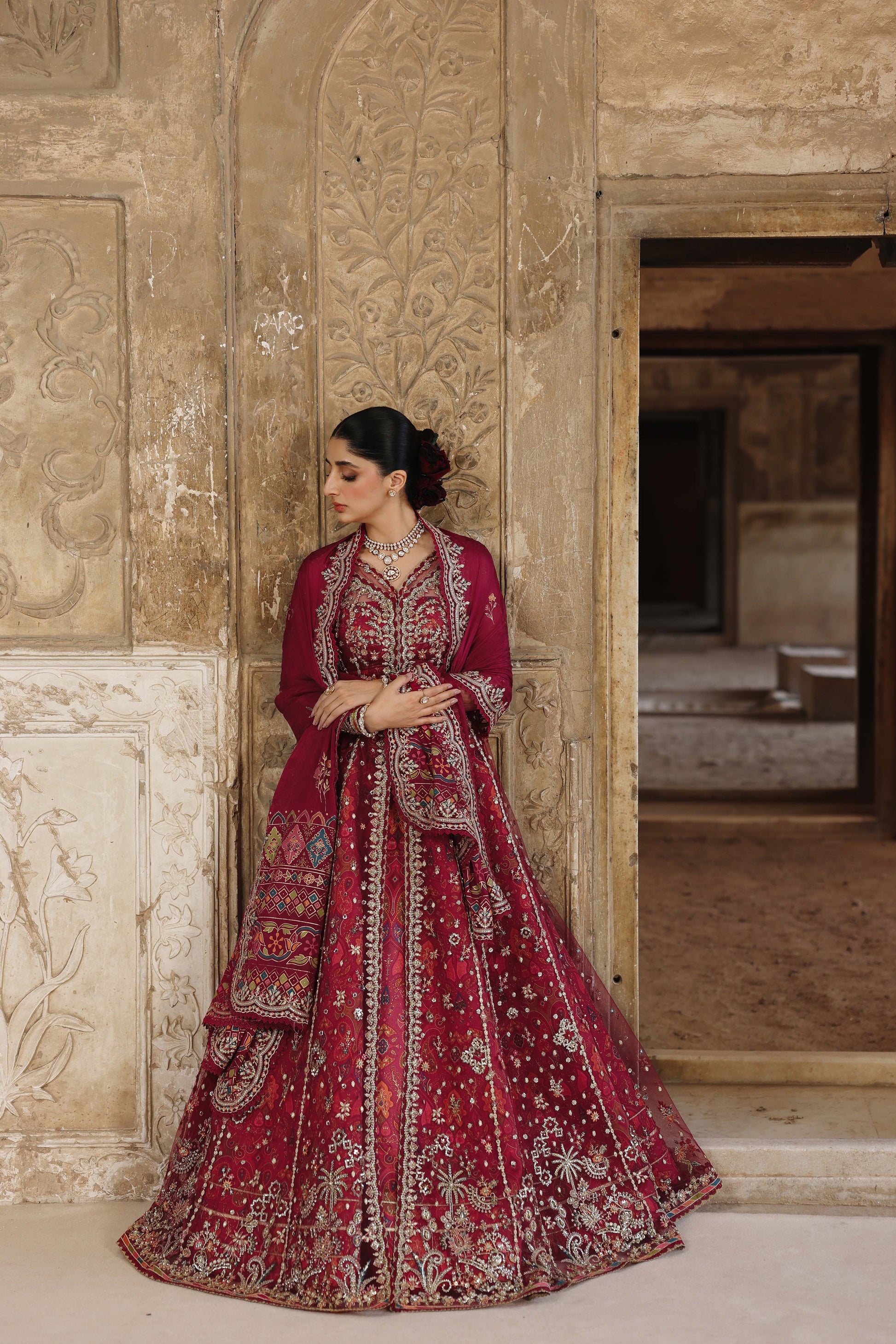 The back bodice is elegantly enhanced with fine gotta work and finished with delicate embroidered tassels and a detailed hem. The sleeves complement the outfit with premium hand-made gotta embroidery and lace, completing the look with sophistication. A digital printed slip adds an elegant inner layer that enhances the beauty of the net fabric.