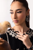The design that deserves all your attention—our true showstopper! Black never fails, especially when brought to life with a jacquard weaved embroidered lawn shirt crafted with heart. Paired with a graceful silk dupatta and soft cotton trousers, this ensemble is the definition of effortless perfection.