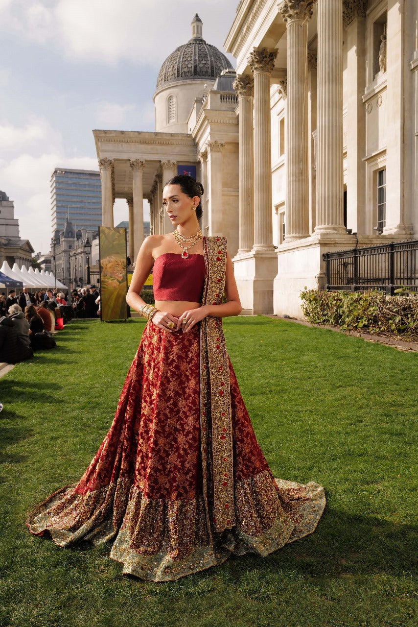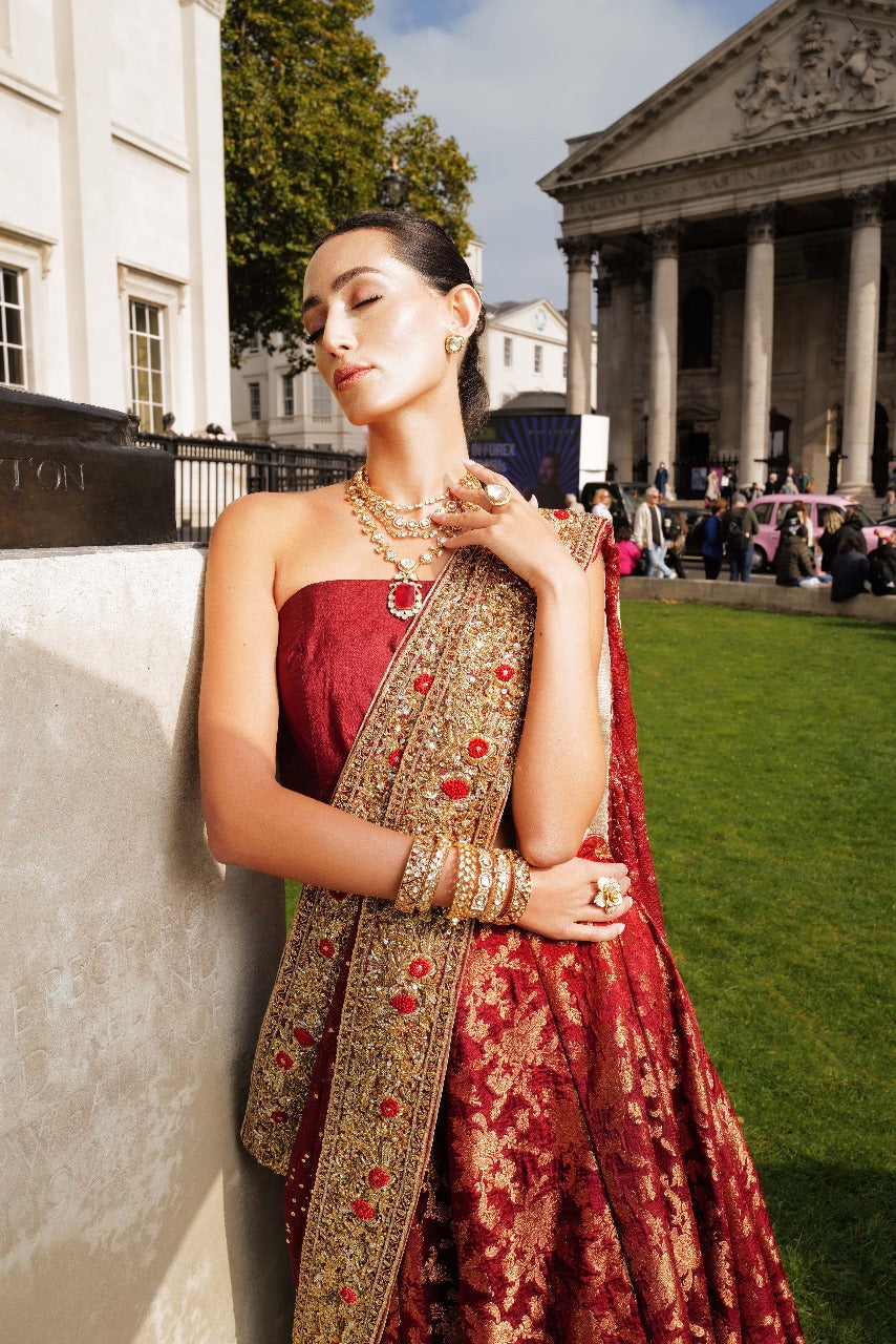 NORA brings a fresh, luxurious twist to the classic red ensemble. Designed for the modern bride who cherishes tradition yet loves subtle innovation, this look blends rich tones with timeless craftsmanship.