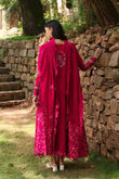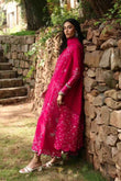 The karandi shawl, enriched with Chikankari embroidery, digitally printed pallus, and a four-sided lace finish, exudes sophistication. Paired with a plain linen trouser, this suit is perfect for those seeking refined tradition and comfort.
